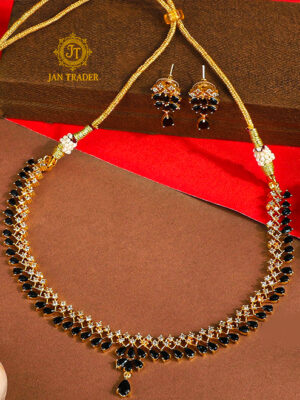 Elegant Gold-Plated Pink Stone Necklace Set with Earrings & Pendant